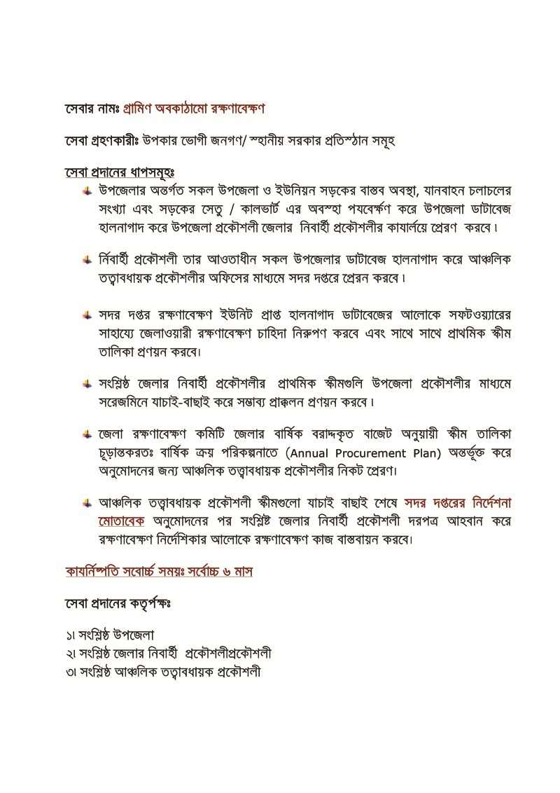 এলজিইডি'র খাত ওয়ারী প্রধান প্রধান কর্মকান্ড